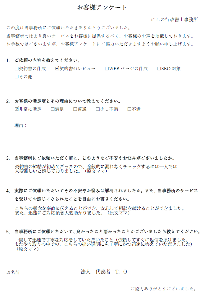 ※契約書に署名・捺印の際は、契約の内容のご確認、注意事項に目を通してしていただくようお願いします。